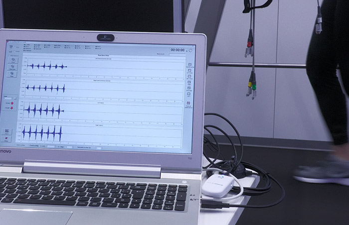 Después contamos con los mejores sistemas de análisis del movimiento con cámaras infrarojos, aceleretrometros para ver a que velocidad se realiza cada movimiento, electromiografía para ver que músculos se activan en cada momento mientras caminas. No nos quedamos solo en la subjetividad del análisis del ojo humano (que en cierta medida es muy útil) sino buscamos la precisión y la cuantificación del problema con estos sistemas